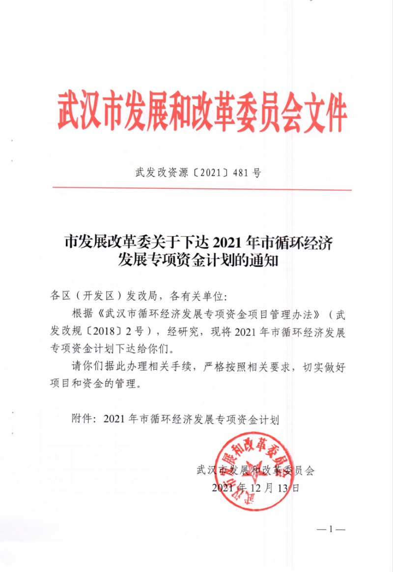 關于下達2021年市循環(huán)經濟發(fā)展專項資金計劃的通知